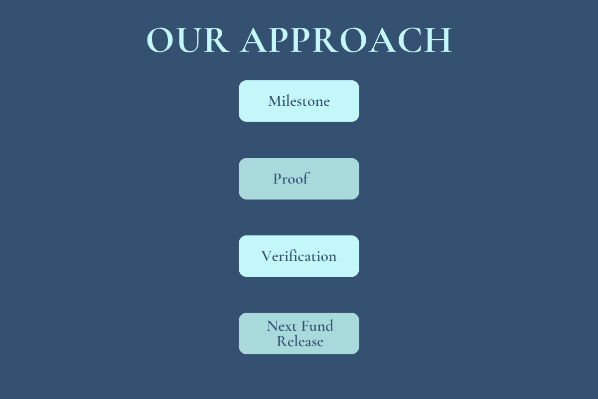 Funding is structured into pre-defined milestones, and each tranche is unlocked only after the previous milestone has been completed, submitted and verified.